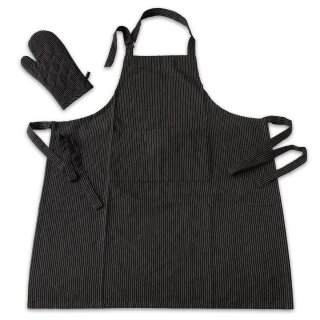 Grillschürze Küchenschürze mit Ofenhandschuh 2teilig im Set schwarz/weiss gestreift